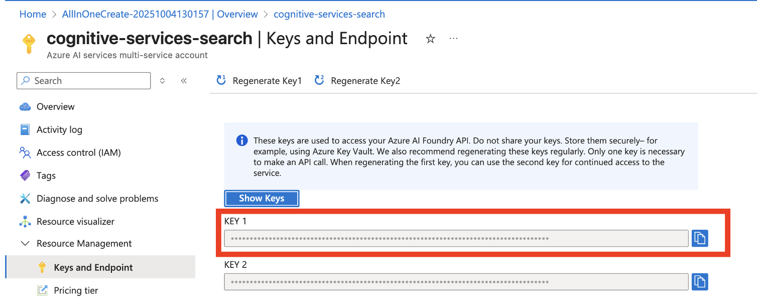 - SEARCH_ADMIN_KEY : clé admin (nécessaire pour créer index/skillset/indexer).