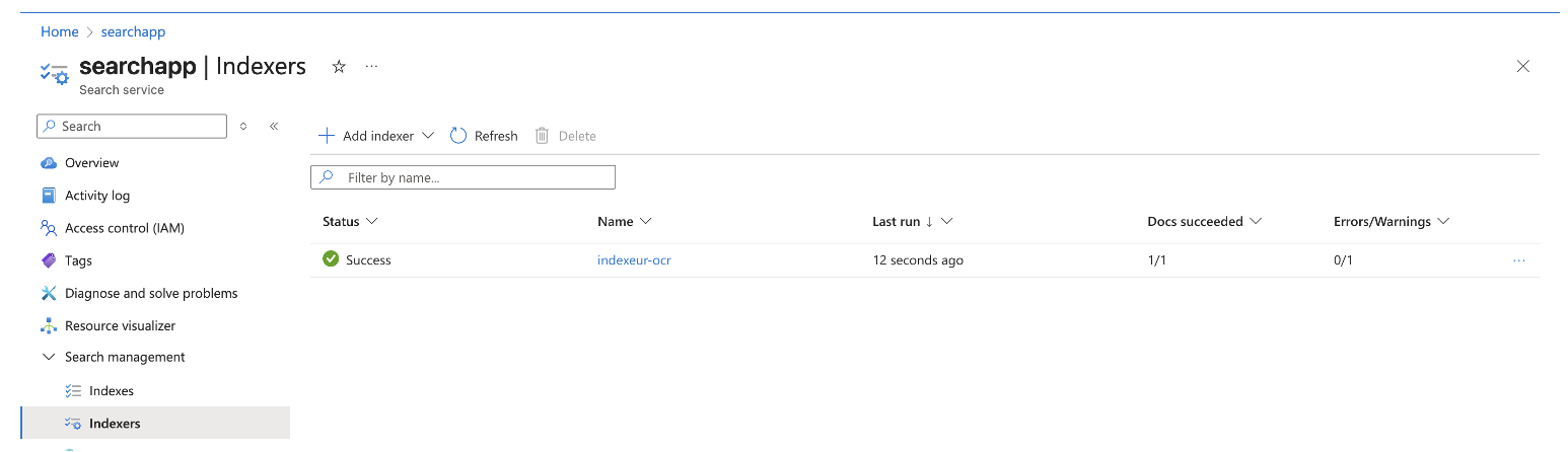 On déclenche l’indexer pour indexer les documents et produire le texte OCR dans l’index.